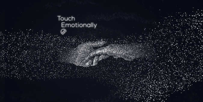 At the end of the journey an interactive screen representing the future awaits the audience. Once you move your hand in front of the screen, small particles which were once product components from the Present form five messages expressing Samsung’s