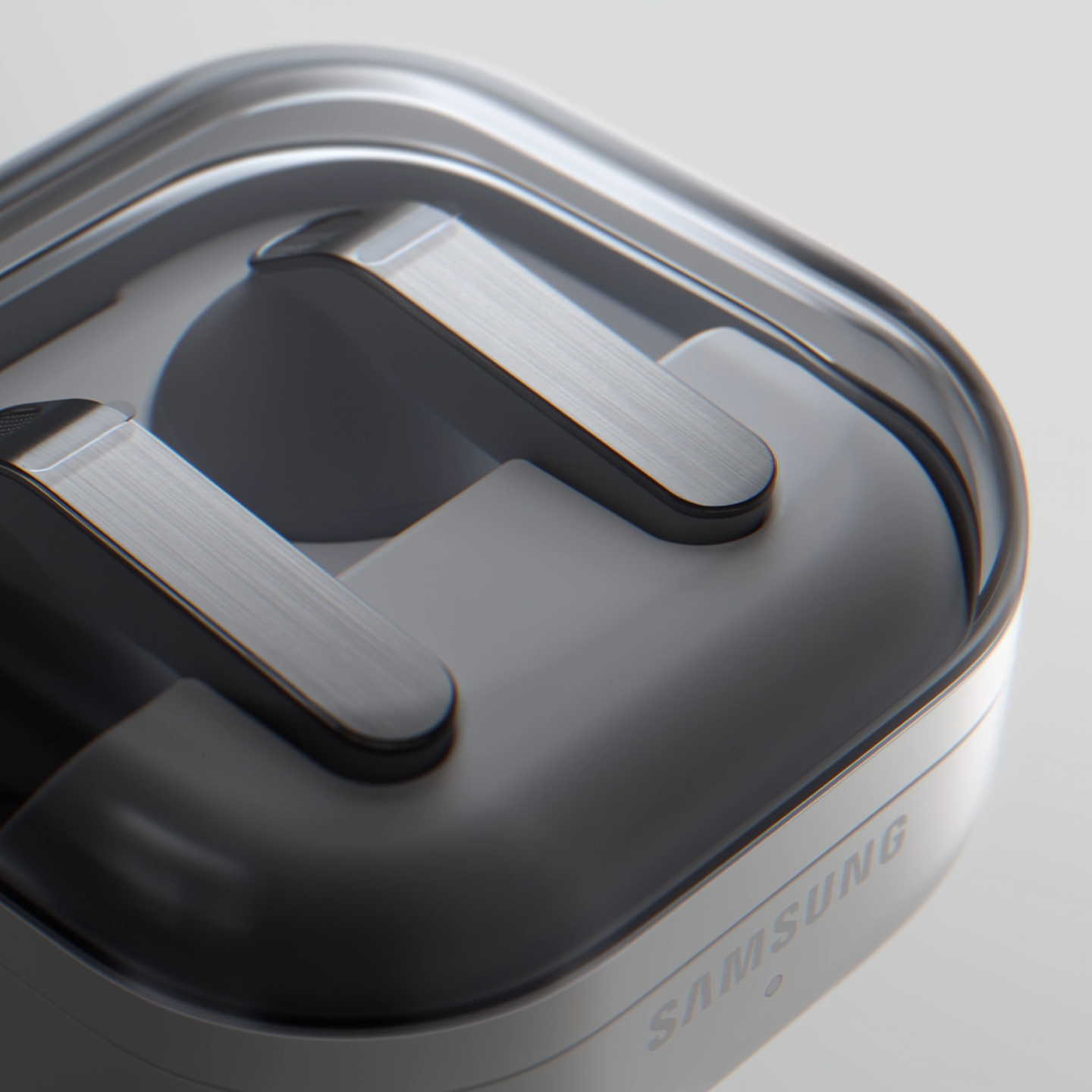 The Galaxy Buds4 series designed with careful consideration for a wide range of factors, including usability, fit and grip. The oblong metal blade was accentuated to create a stronger visual statement that allows the product to be instantly recognized as Galaxy Buds, even from a distance, when worn on the ear.