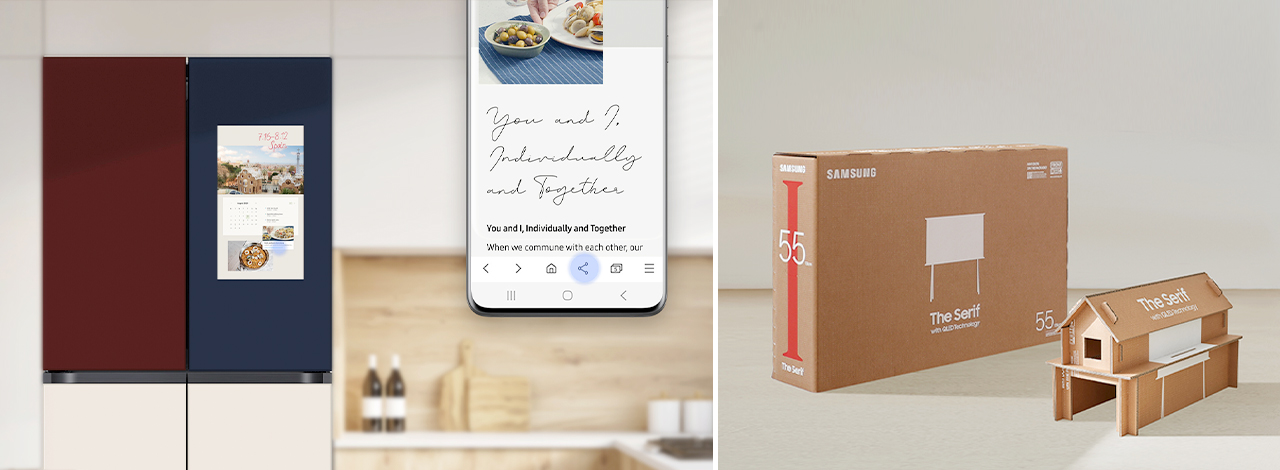 또한, 은상을 차지한 ‘TV 에코 패키지(Samsung Upcycling Solution for TV Packaging)’는 전 세계에 출시되는 라이프스타일 TV ‘더 프레임(The Frame)’, ‘더 세리프(The Serif)’, ‘더 세로(The Sero)’의 포장재에 업사이클링 개념을 적용한 포장 박스다. 소비자가 원하는 대로 조립해 고양이 집이나 TV 테이블 등 다양한 용도로 재활용해 DIY 경험을 할 수 있도록 디자인됐다. 한 번 쓰고 버려지는 TV 포장재를 가치 있게 사용해 환경 보호에 대한 소비자의 인식과 참여를 독려했다는 점에서 혁신성을 인정받아 ‘2020 CES 혁신상’을 수상하기도 했다.