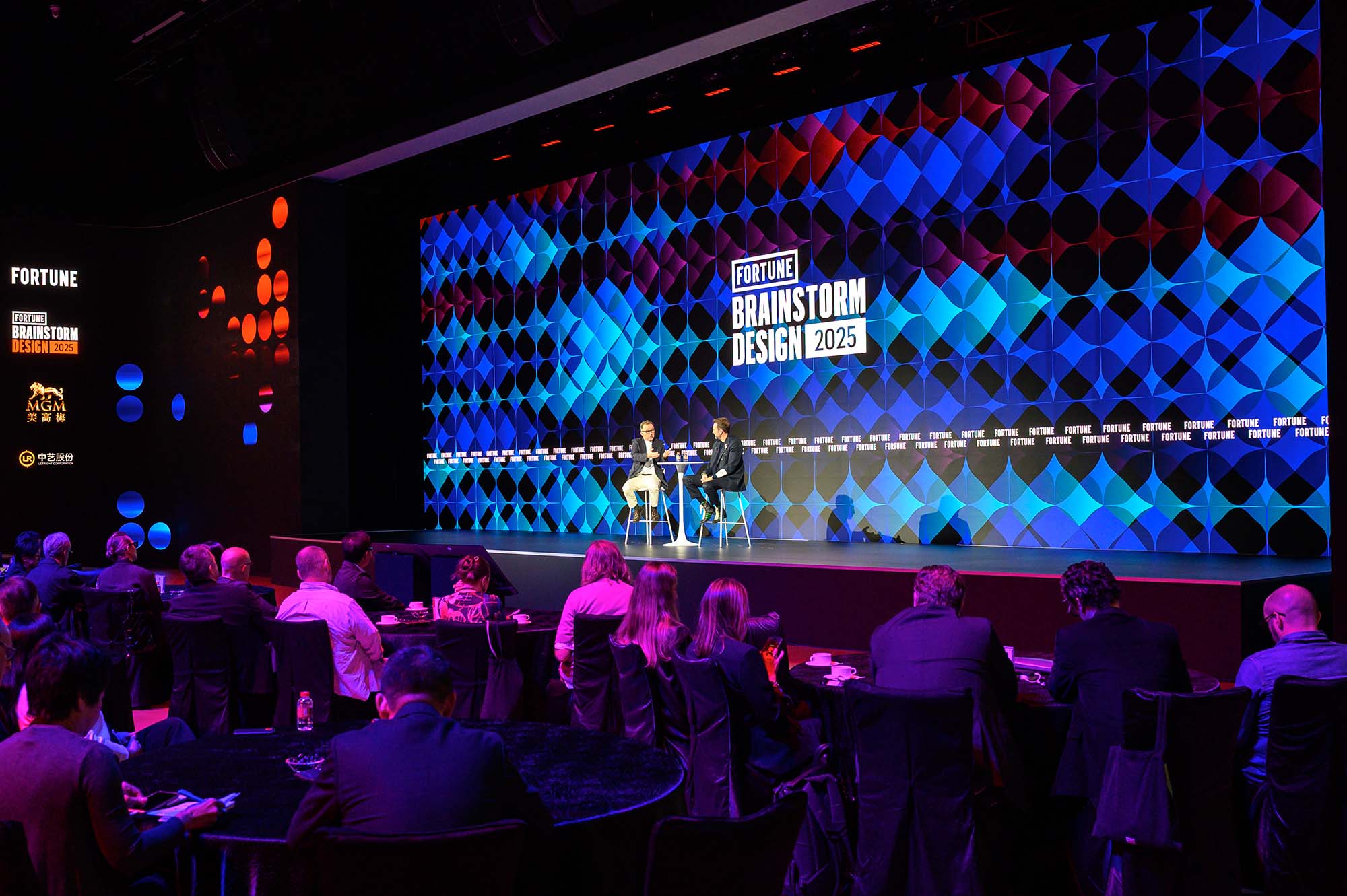 ▲ 포춘 브레인스톰 디자인 2025 행사 무대에서 삼성전자 CDO 마우로 포르치니 사장이 진행자 토니 챔버스와 대담을 나누는 모습