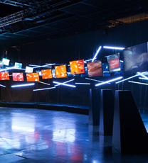 The deconstructed parts and components dissolve into smaller pieces as they pass through multiple screens installed along the evolution path of the journey. The pieces from the present flow into the screen, evolving into digital elements, and then they finally culminate in a big screen. The entire journey is highlighted by the LED lights installed around the screens. As if to show Samsung’s Design DNA, hidden beneath the hard exterior of electronic products, the dissolving pieces symbolize Samsung moving towards an innovative future.