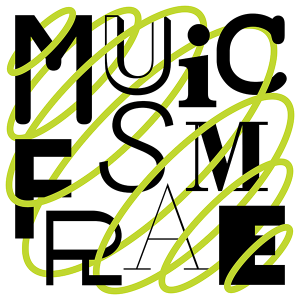 The images of music frames in the space, and graphic representations of sounds are harmoniously mixed and arranged like a checkerboard.