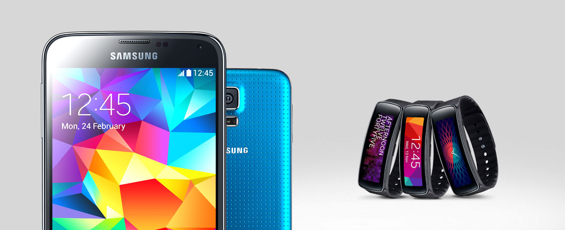A perforated pattern is applied to the back of the Galaxy S5, giving the phone a premium feel and sentimental quality. The phone’s state-of-the-art technology follows global fashion trends by incorporating four metallic colors, giving it a chic appeal. The Gear Fit features a 1.84” curved display, using a specially designed band that fits comfortably around a user’s wrist. The band’s simple lock and light materials allow it to become a fashionable item that can be worn daily.