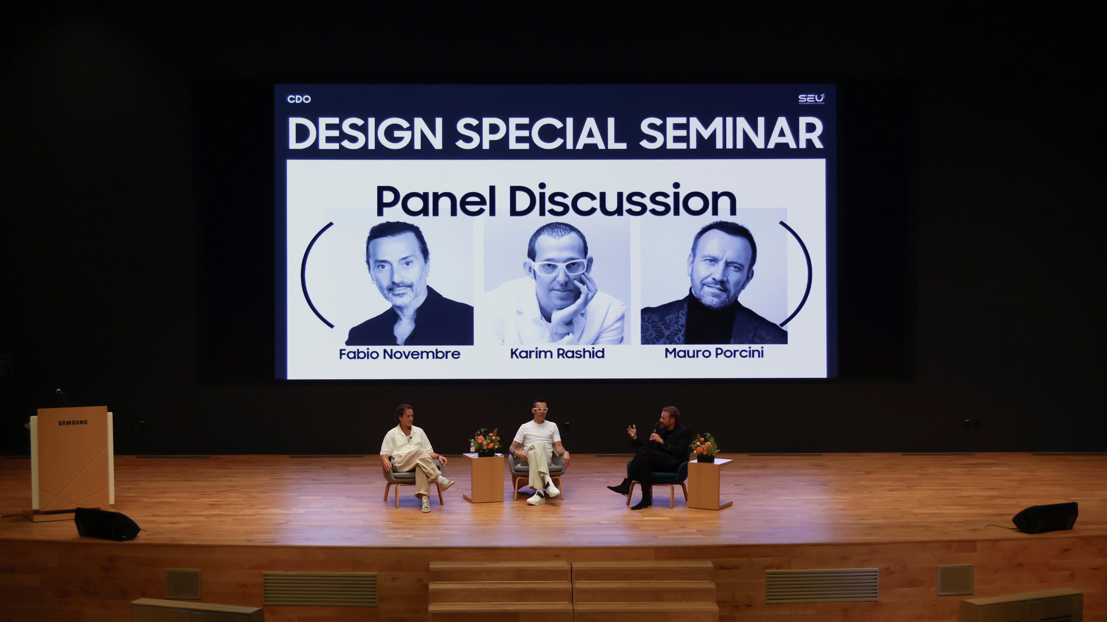 The session concluded with a panel discussion led by President Mauro Porcini, featuring Karim Rashid and Fabio Novembre, where design philosophy and approaches to innovation were explored with the design teams. The discussion highlighted how human-centered design can shape everyday experiences, the role of emotional values in an increasingly connected world and the pursuit of sustainable future grounded in humanity.