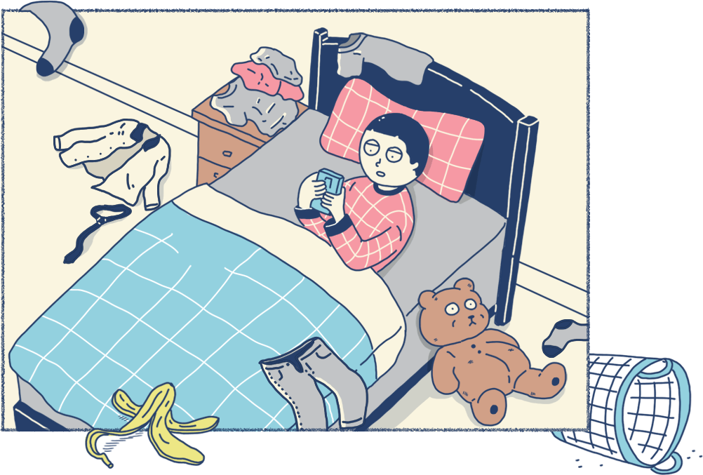 home and the piles of dirty laundry that