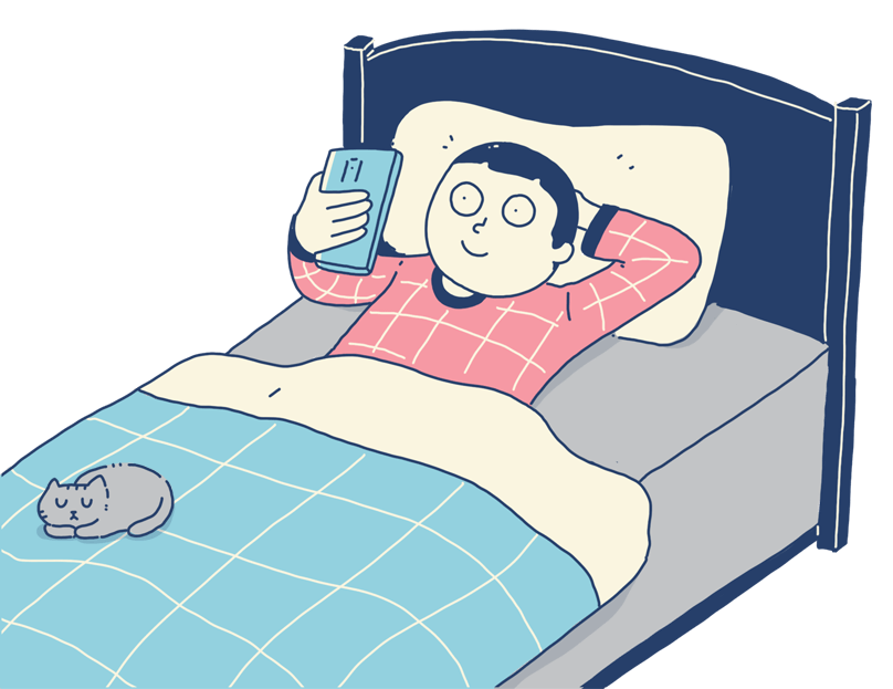 This is a drawing of staring at a smartphone in the bed.