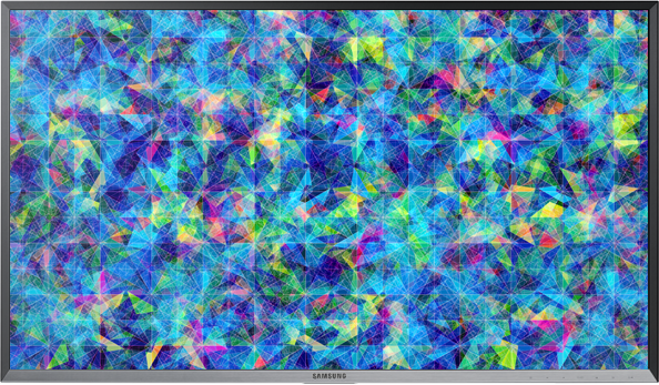 Borowik generated a computer program that automatically wove colored particles to create a graphic pattern-like kaleidoscope, using the UD970 to monitor his results. Thanks to RGB calibration technology, he noticed that the color range of blue and green was much more vivid in UD970 compare to other monitors. To test digital art, the graphic was made into a video clip, and printed on fabric.