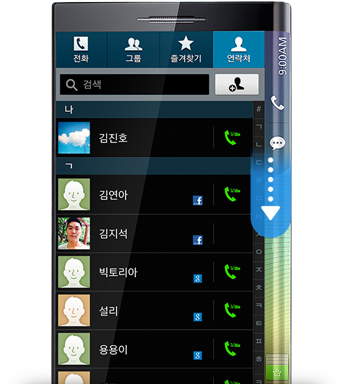 빠른 접근이 가능해졌다. 이로써 엣지 스크린의 정보와 전면 스크린 간의 상호 연계된