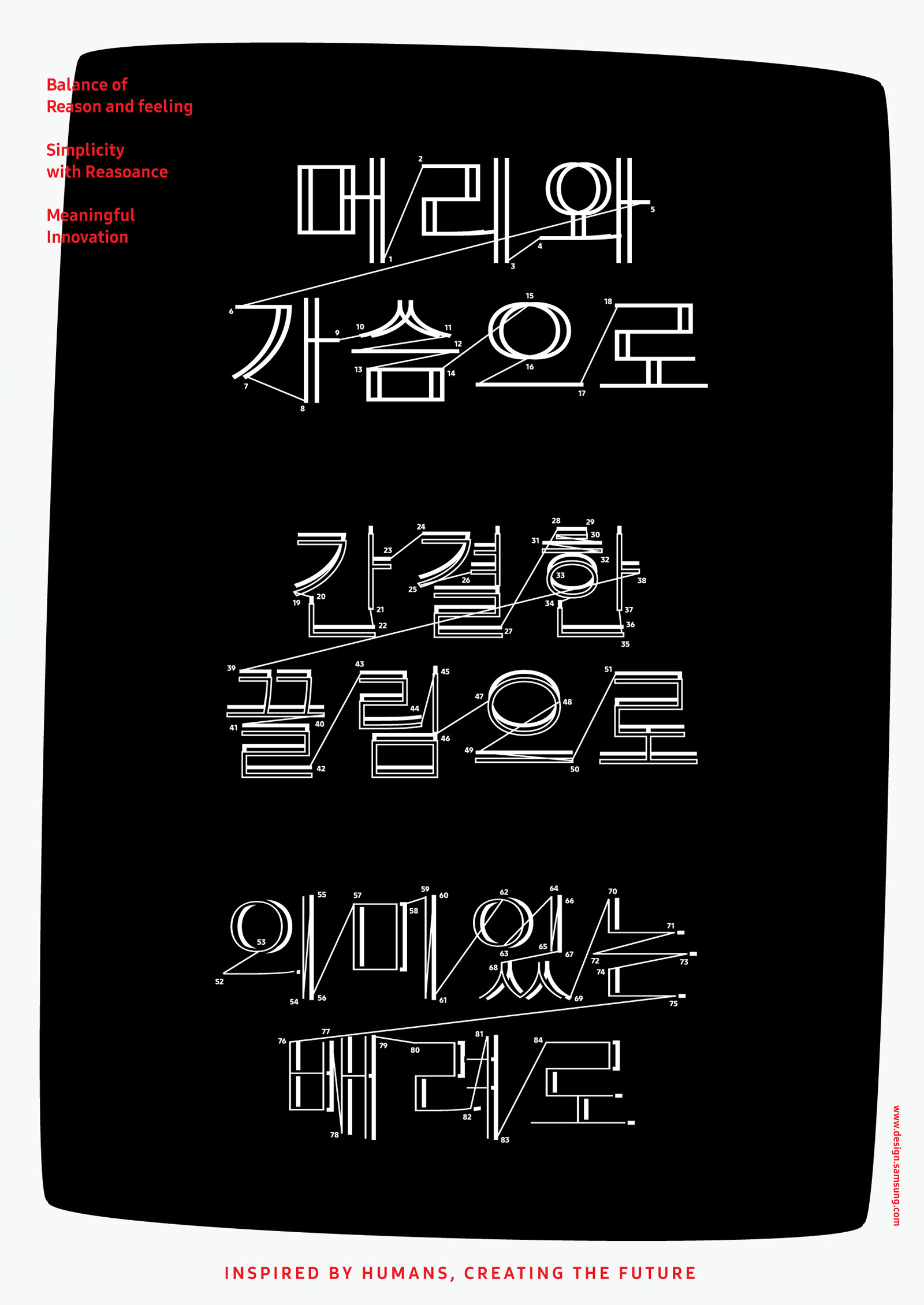 삼성전자 디자인의 가치를 공감할 수 있는 언어로 재해석한 세 가지 한글 포스터.