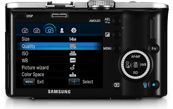 아이덴티티를 삼성 미러리스 카메라인 NX 시리즈에도 계승했다. NX100에서 곡선으로 드러났던 트랙이 NX200과 NX300을 거치며