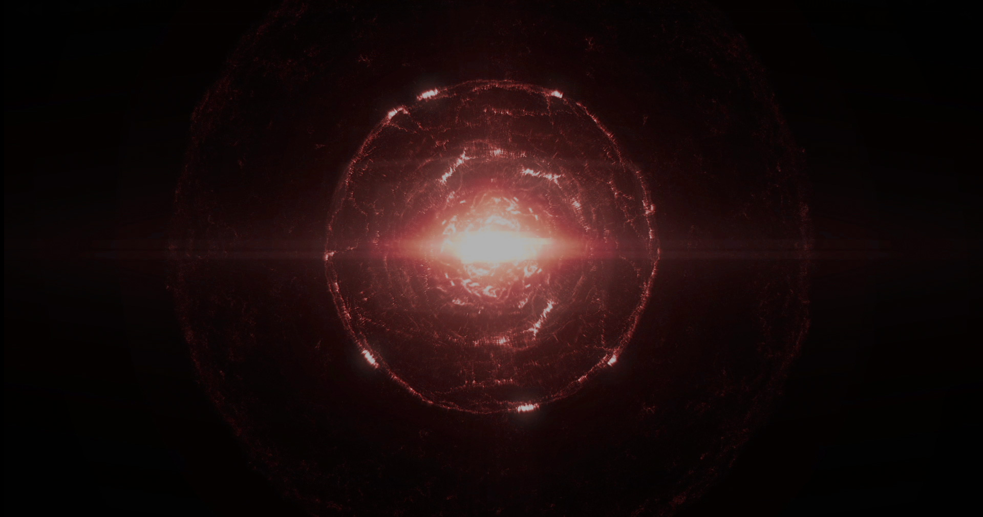 붉은색의 둥근 파장이 점점 작아지는 영사입니다.
