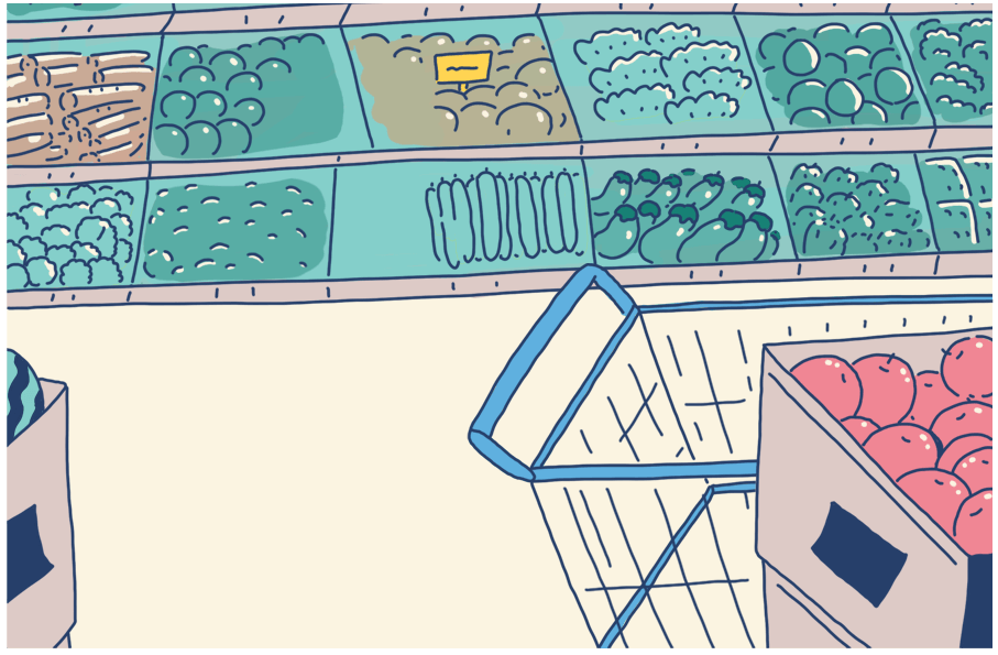 컨베이어 벨트 위에 삼성전자 제품들이 나열되어 있는 그림입니다.