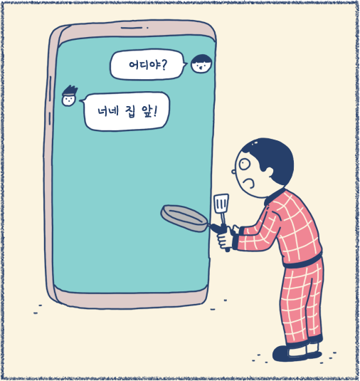 친구와 메시지를 주고받는 내용이 보여지는 스마트폰 그림입니다.