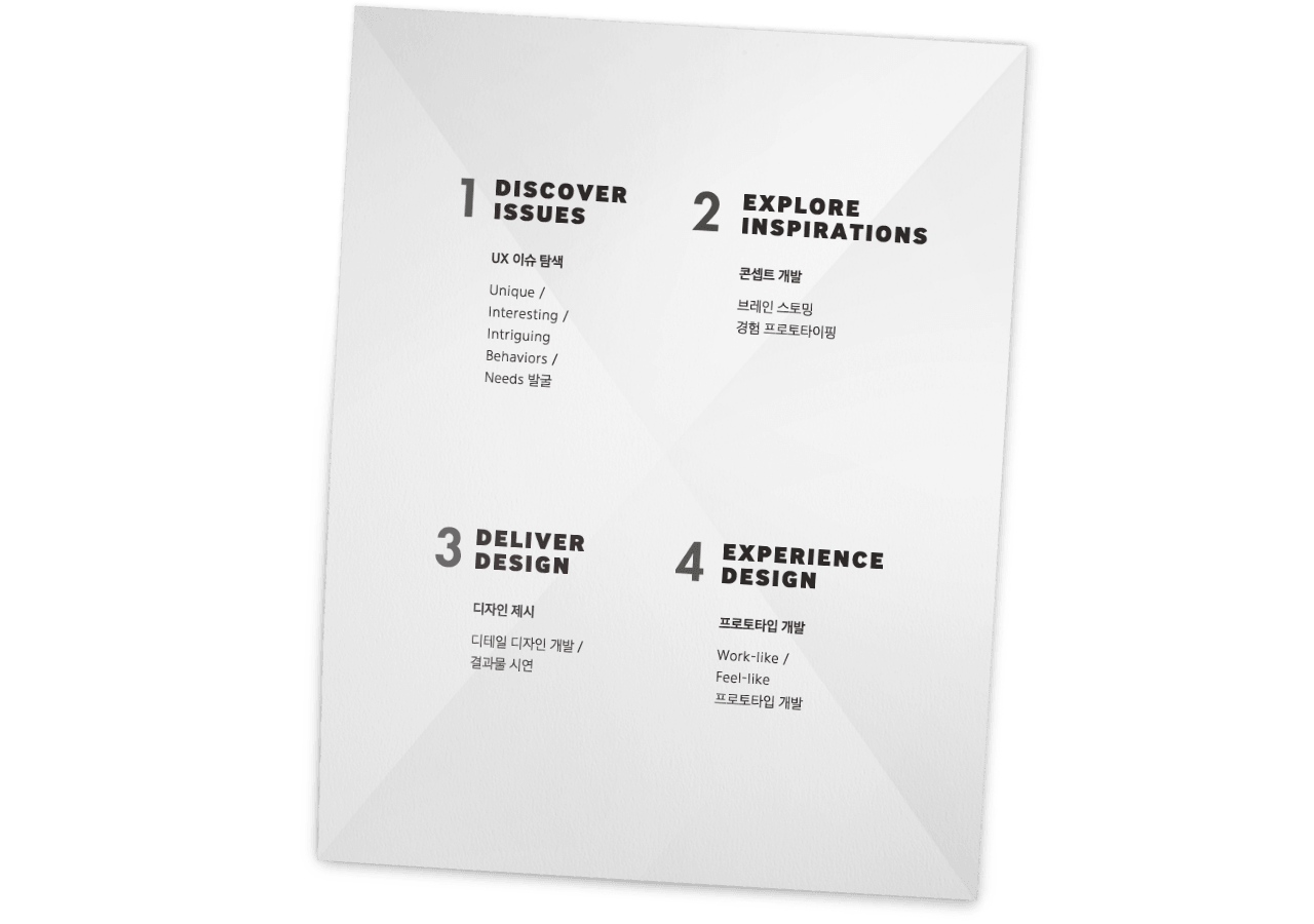 젖지 않는 종이, ‘종이’와 ‘방수’라는 두 개념을 조합하는 데 주목했다. 행사장 혹은 놀이공원 같은 특별한 상황 안에서 브로슈어를 활용해 재미있는 경험을 사용자에게 줄 수 있도록 했다.